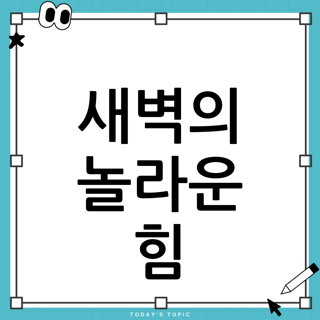 서론 새벽은 너무나 특별한 시간입니다. 38분 동안의 시간을 활용하면, 우리의 삶은 더욱 창조적이고 의미 있게 변화할 수 있습니다. 이 글에서는 그 힘을 탐구해 볼 것입니다. 새벽 38분 루틴을 통해 여러분도 원하는 삶을 설계할 수 있습니다. 새벽 38분의 중요성 새벽 3시 30분, 전 세계가 정적에 잠긴 시간입니다. 하지만 이 평화로운 시간에 일어나는 사람들은 그들의 운명을 다시 … Read more